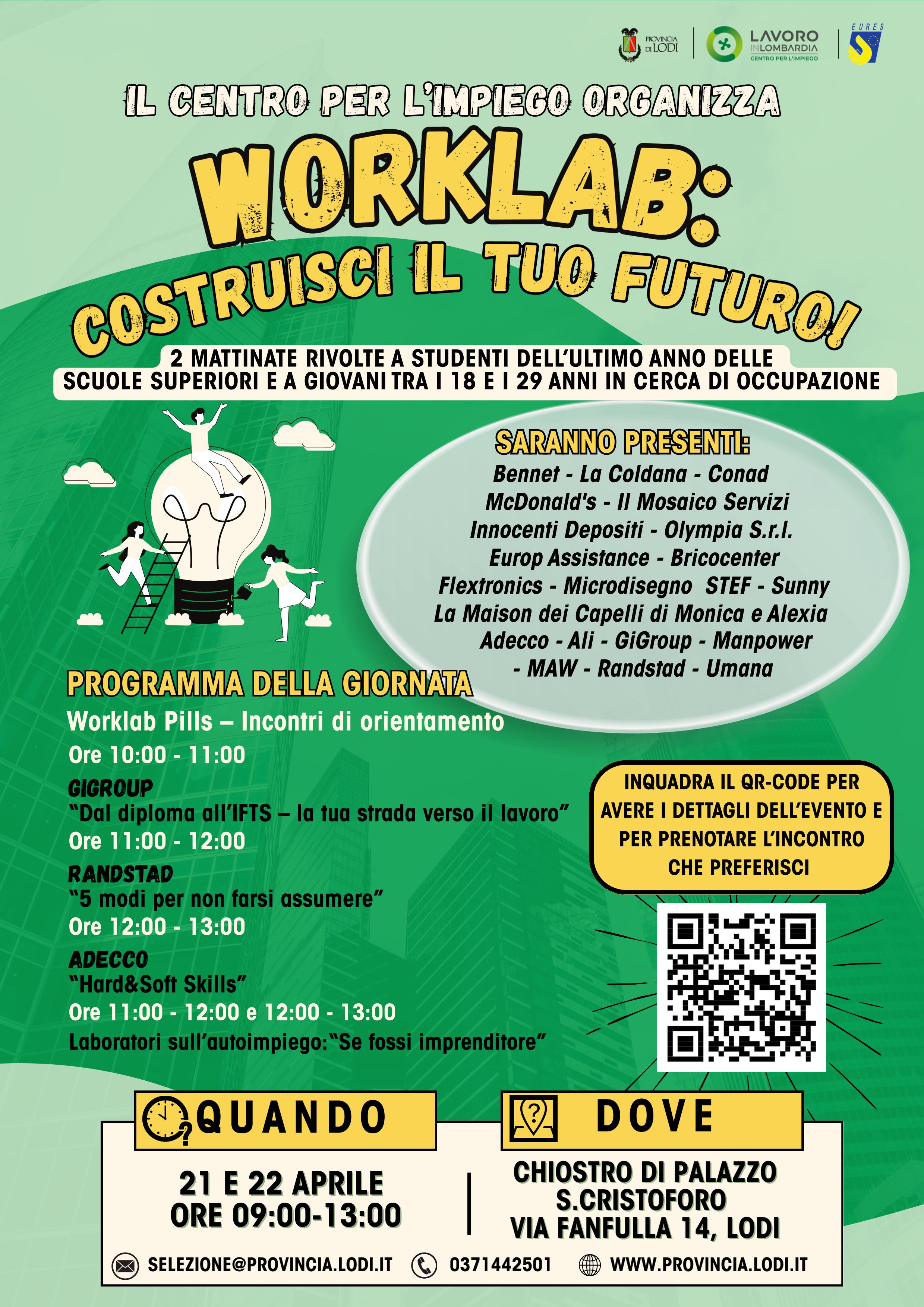 Nel corso delle due giornate saranno proposti incontri di orientamento "Worklab Pills"e laboratori tematici sull'autoimpiego,offrendo ai